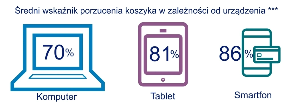 Średni wskaźniki porzucania koszyka różni się w zależności od rodzaju urządzenia, z którego korzystają klienci.3